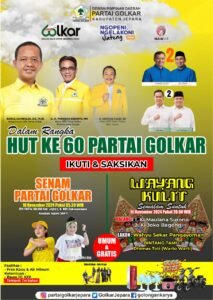 mediaRCM | Jepara – DPD Partai Golkar Jepara melalui Ketua Dewan Pengurus Daerah Partai Golkar (DPD) Kabupaten Jepara H. Akhmad Faozi S.E., kepada awak media menginformasikan bahwa dalam rangka memperingati HUT ke-60 Partai Golkar.